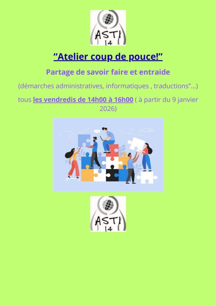 L’ASTI vous propose une nouvelle activité tous les vendredis de 14 à 16 heures. Si vous avez besoin d’aide pour des démarches sur ordinateur, pour remplir des formulaires, pour faire votre CV… des bénévoles seront là pour vous aider. N’hésitez pas à venir le vendredi après-midi à partir de 14 heures. Attention : cet atelier […]